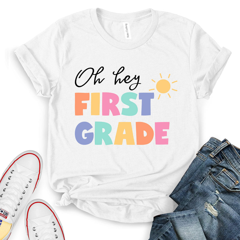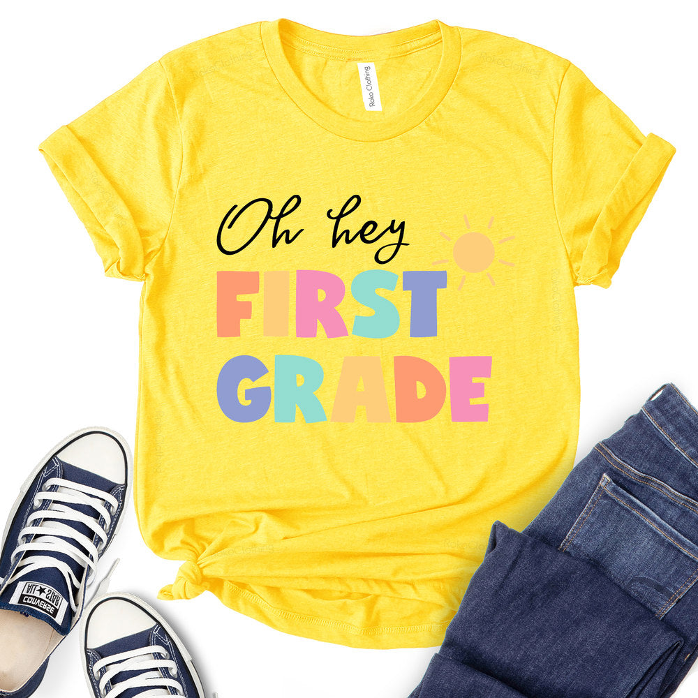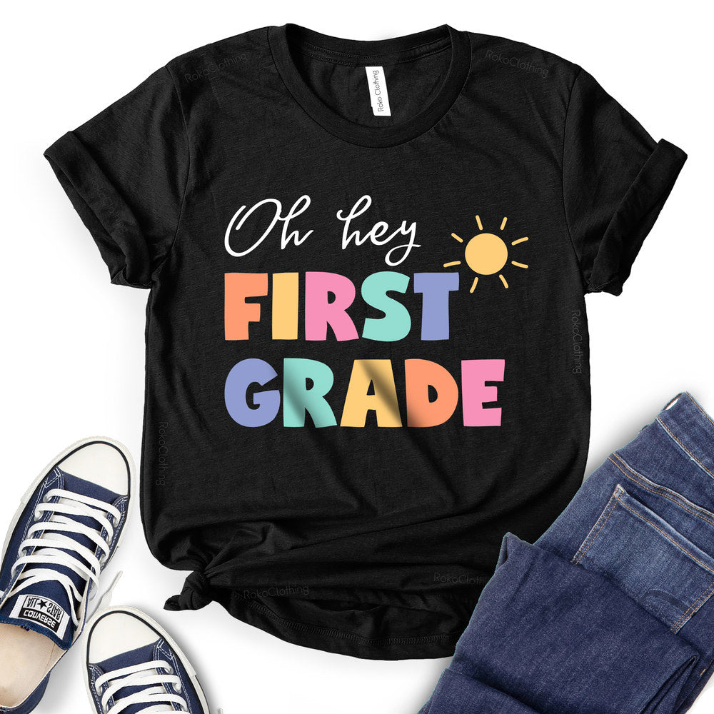 - WIDELY USAGE: Our First Grade T-shirt is suitable for casual, school, home, street, office, party, camping, hiking, shopping, daily life, etc. You can easily match with shorts, pants, jeans, shoes, boots, etc. Such a beautiful and temperamental T-shirt will make you more fashionable and attractive!