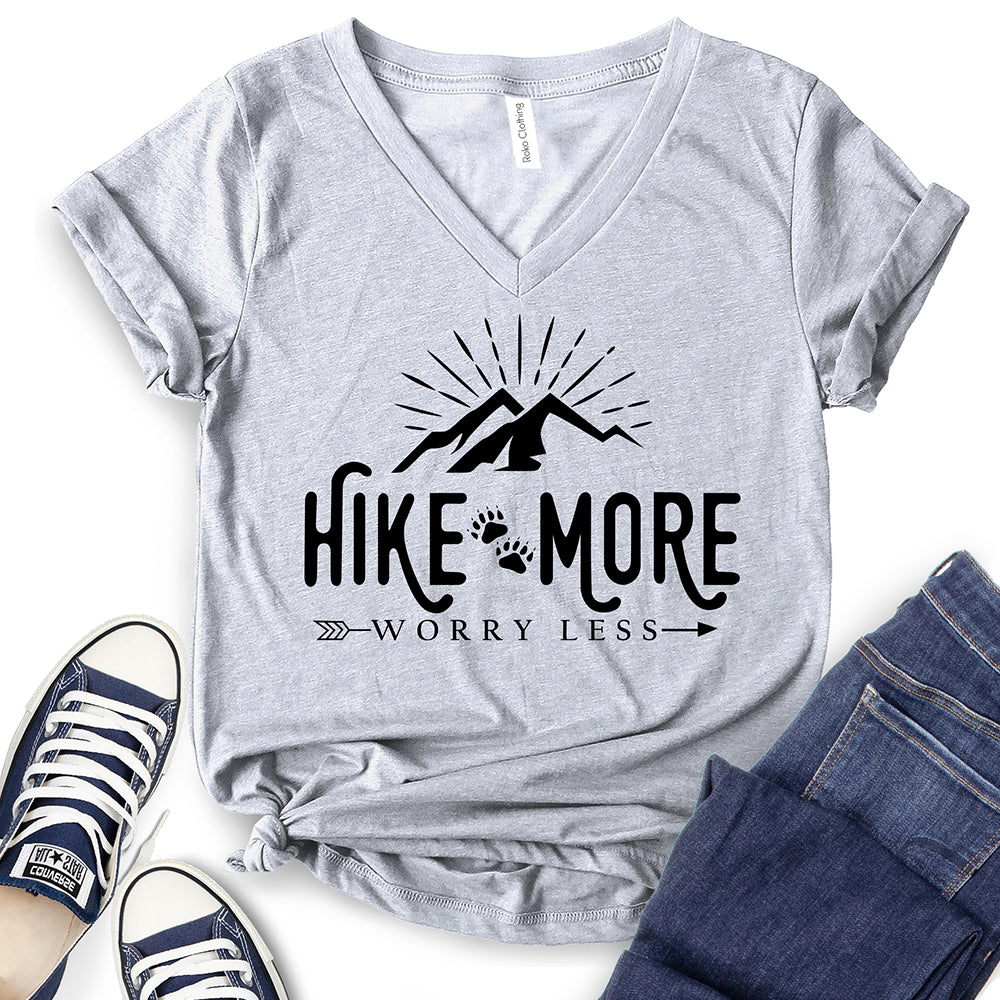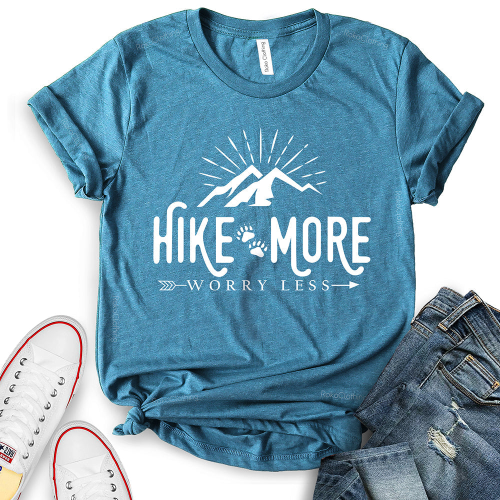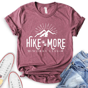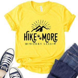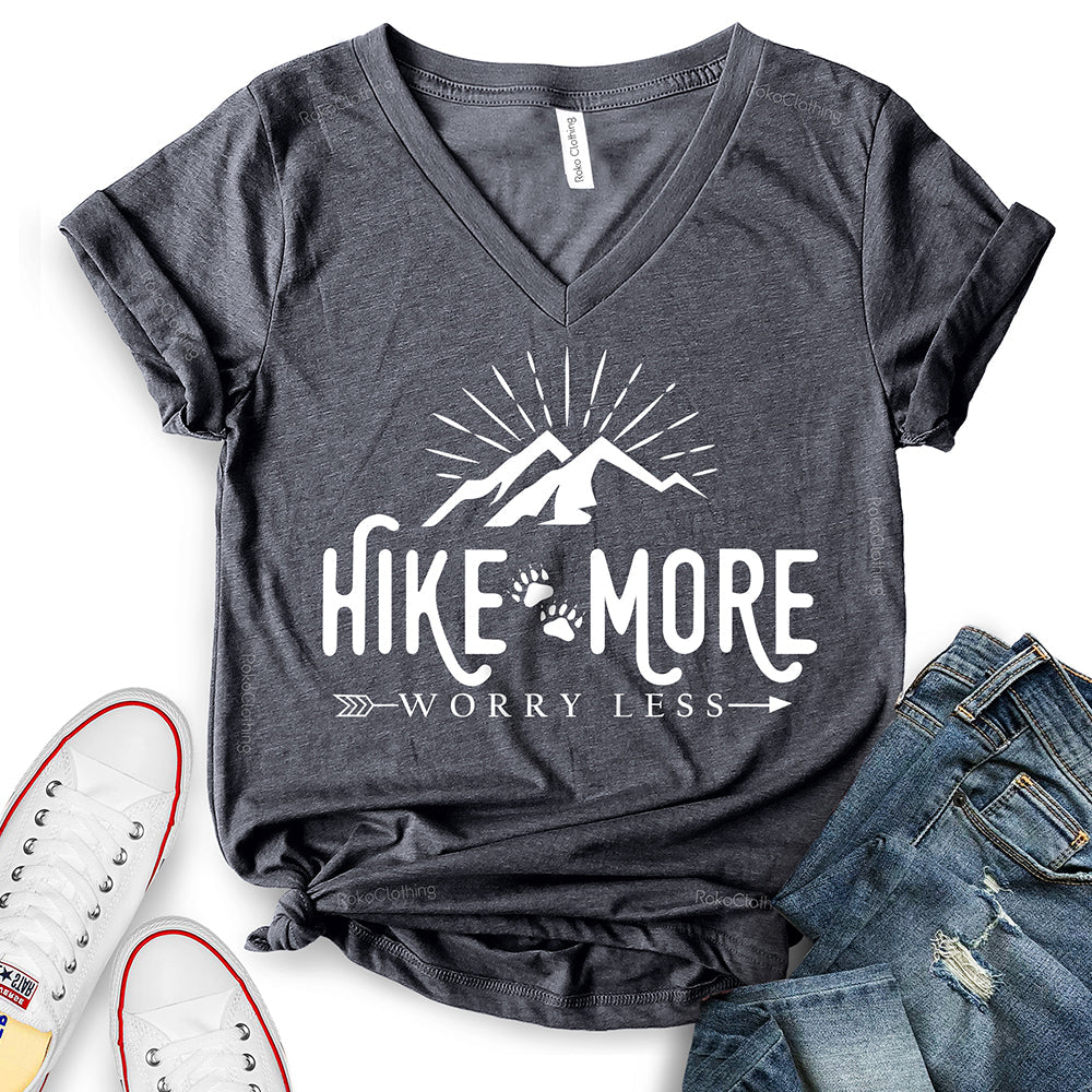 - WIDELY USAGE: Hike More Worry Less T-shirt is suitable for casual, school, home, street, office, party, camping, hiking, shopping, daily life, etc. You can easily match with shorts, pants, jeans, shoes, boots, etc. Such a beautiful and temperamental T-shirt will make you more fashionable and attractive!
