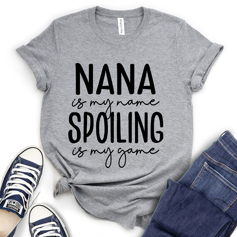 - Nana is My Name Spoiling is My Game Text Design T-Shirt