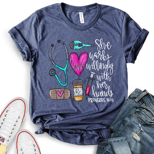 - She Works Willingly With Her Hands Proverbs 31:13 T-Shirt