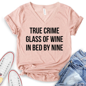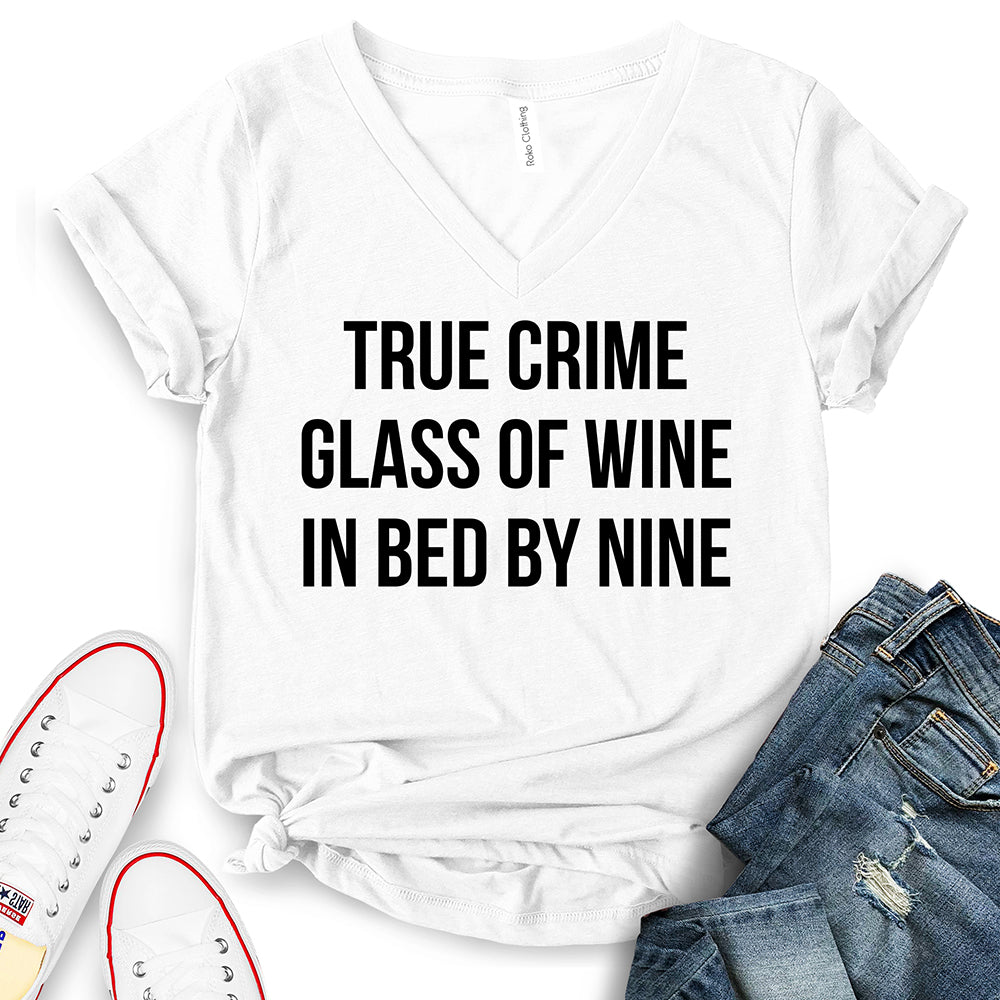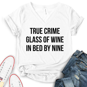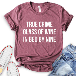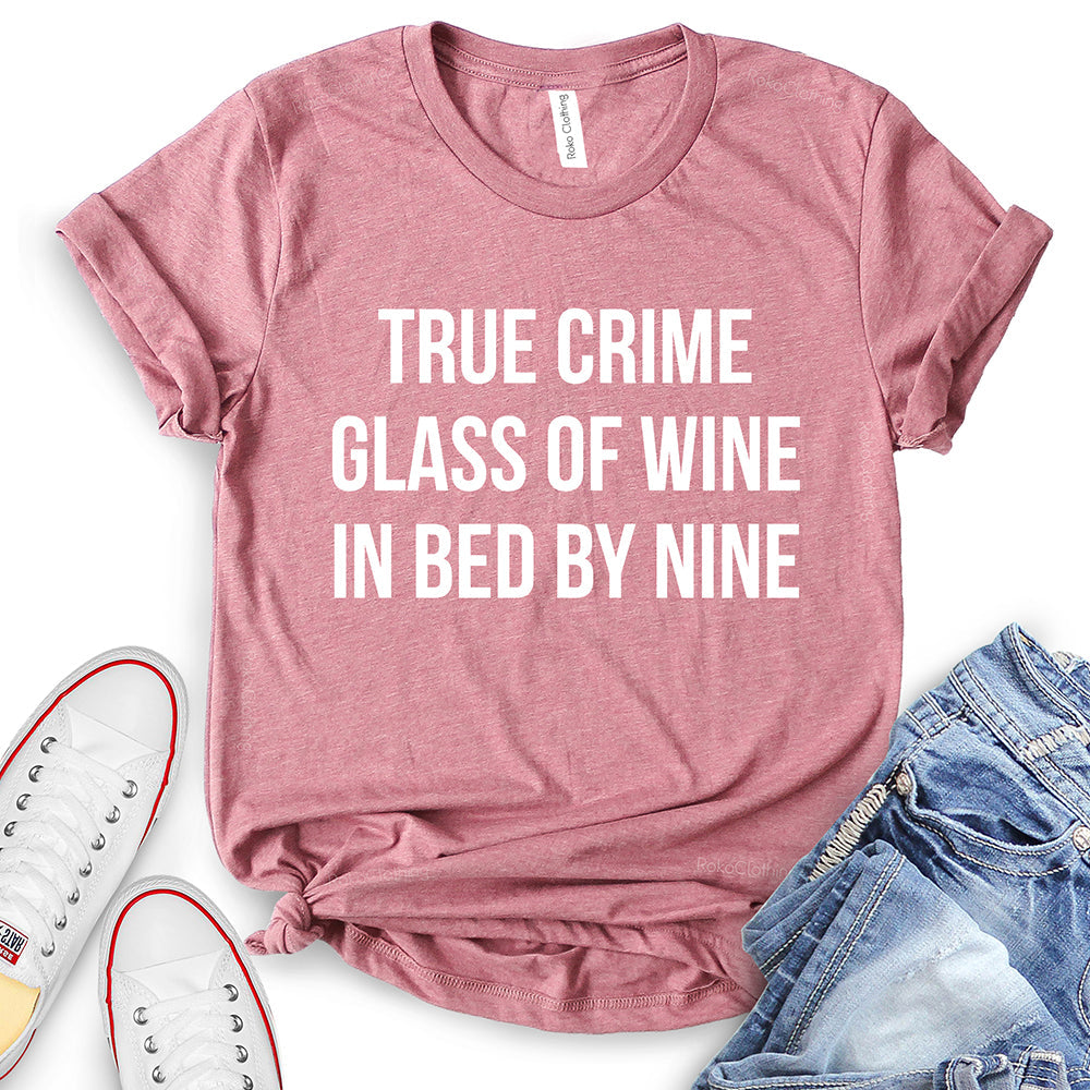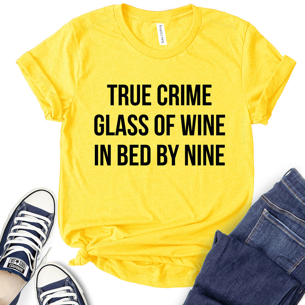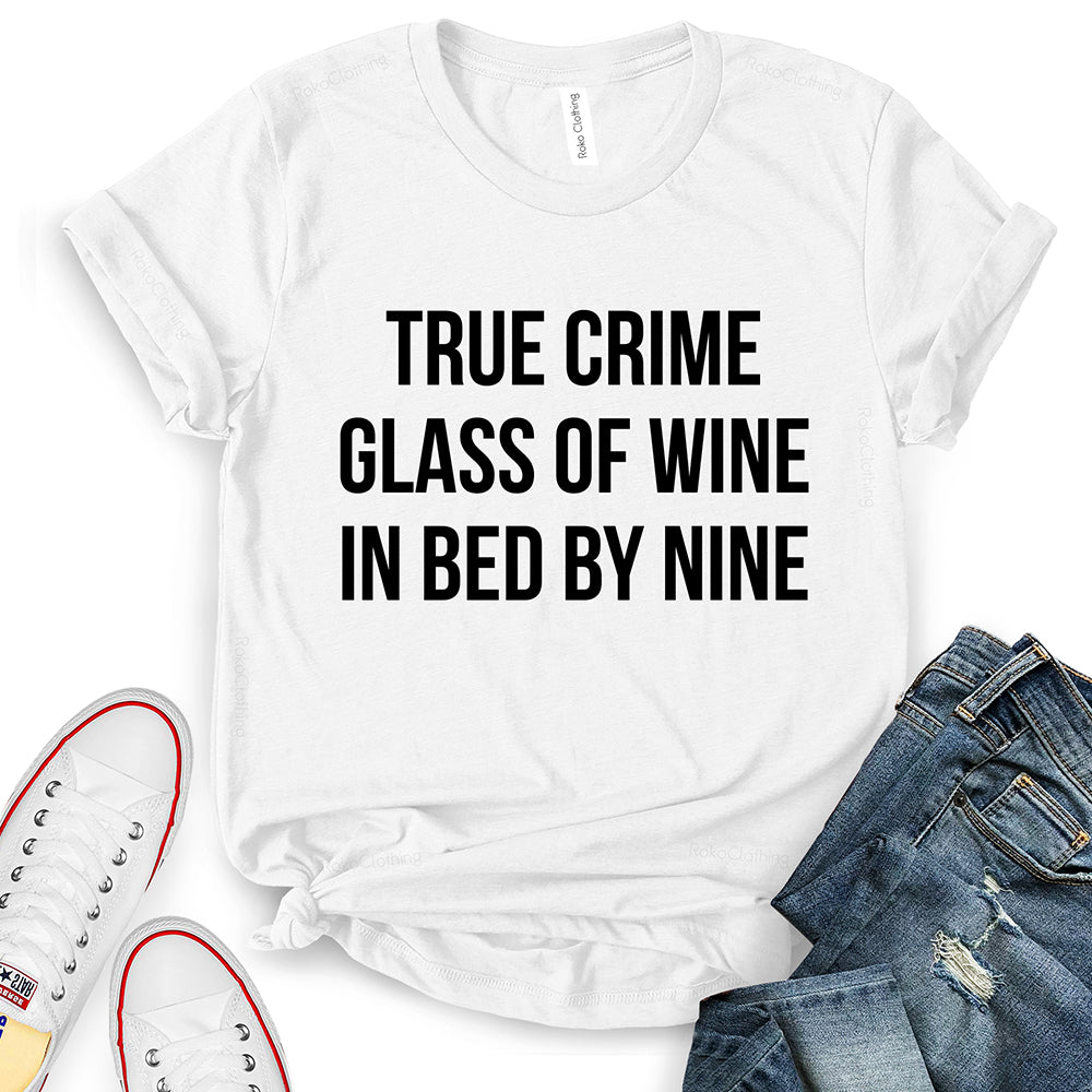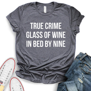 - True Crime Glass of Wine in Bed by Nine T-Shirt,