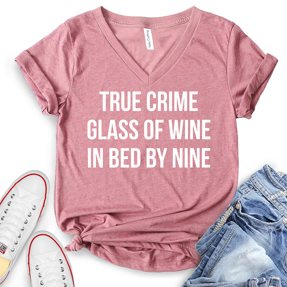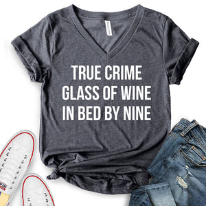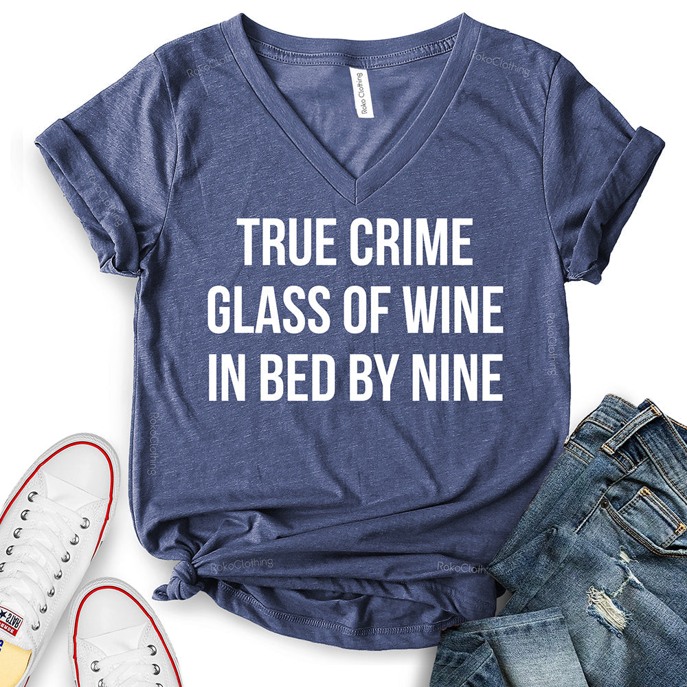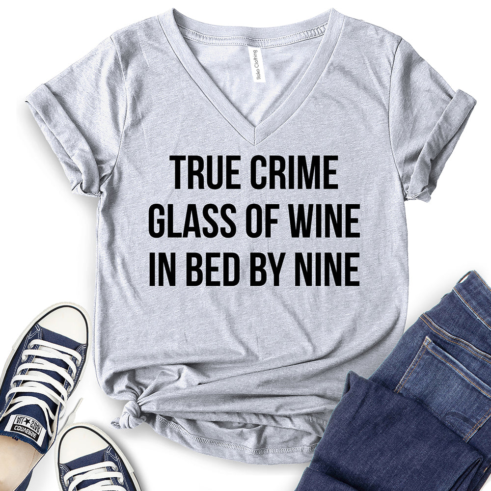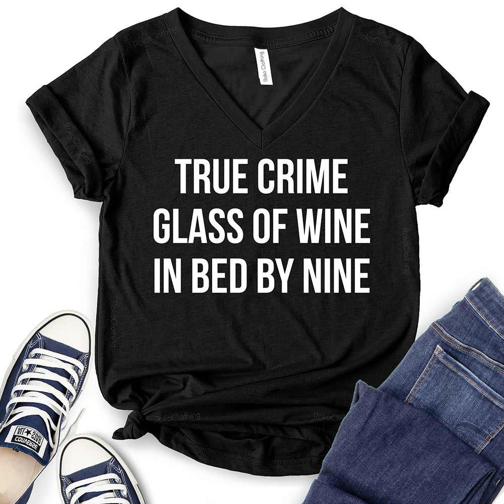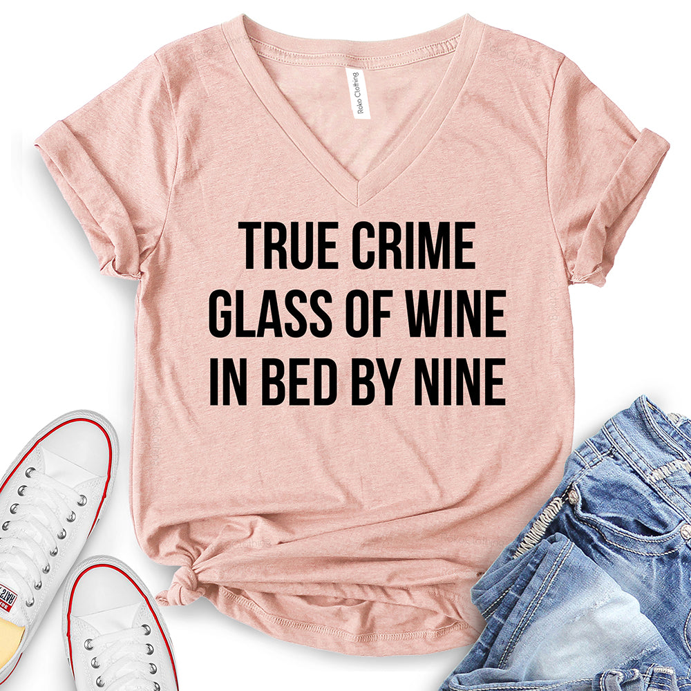 - True Crime Glass of Wine in Bed by Nine T-Shirt,