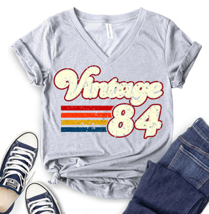 - MADE IN USA: Vintage 84 T-shirt for Women - Birthday Ideas for 40th tees, with WOMEN, UNISEX and WOMEN V NECK model options available, are produced in the USA. We screen print our graphic tees with state of the art equipment to ensure vibrant colors and lasting durability.