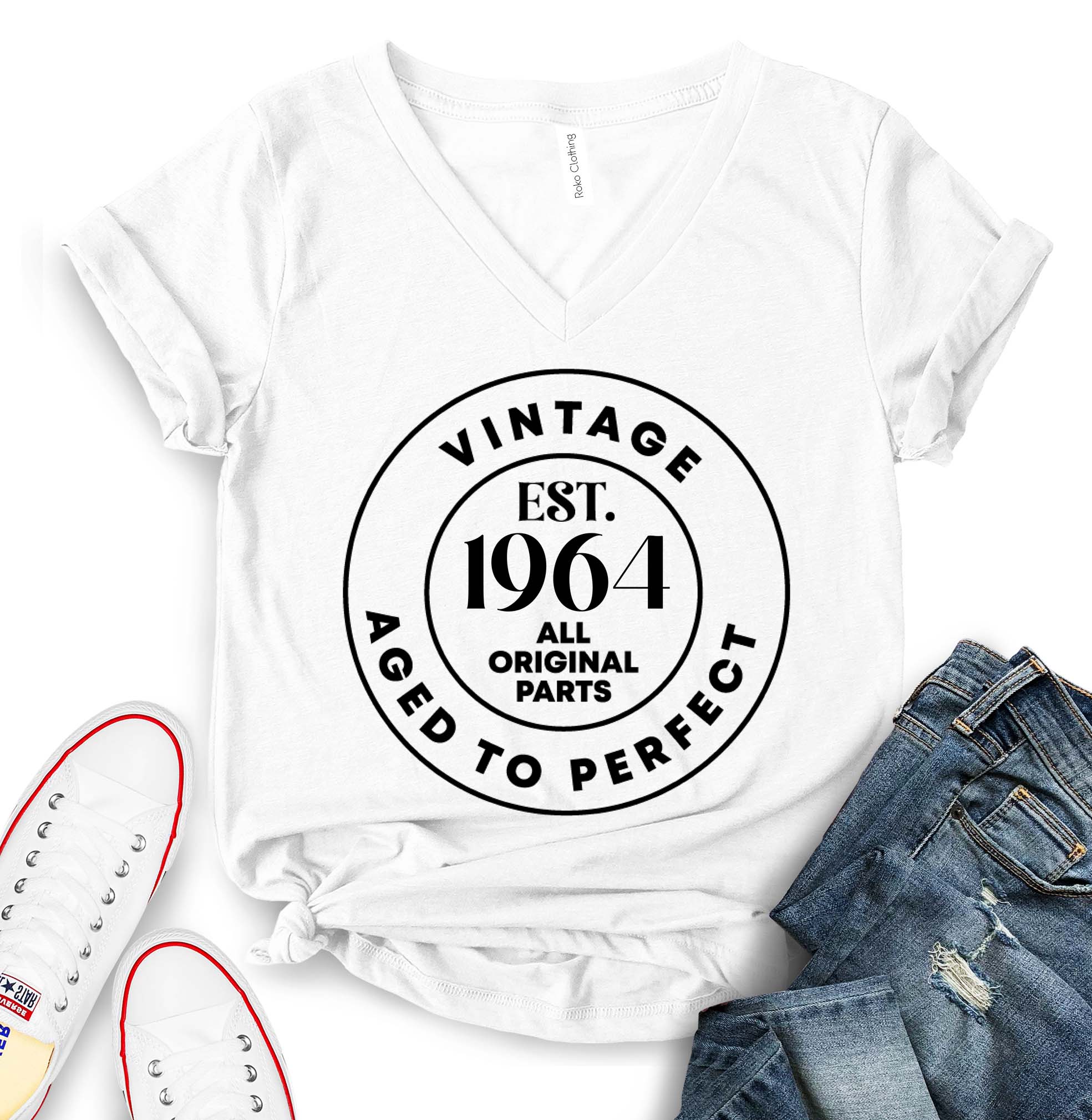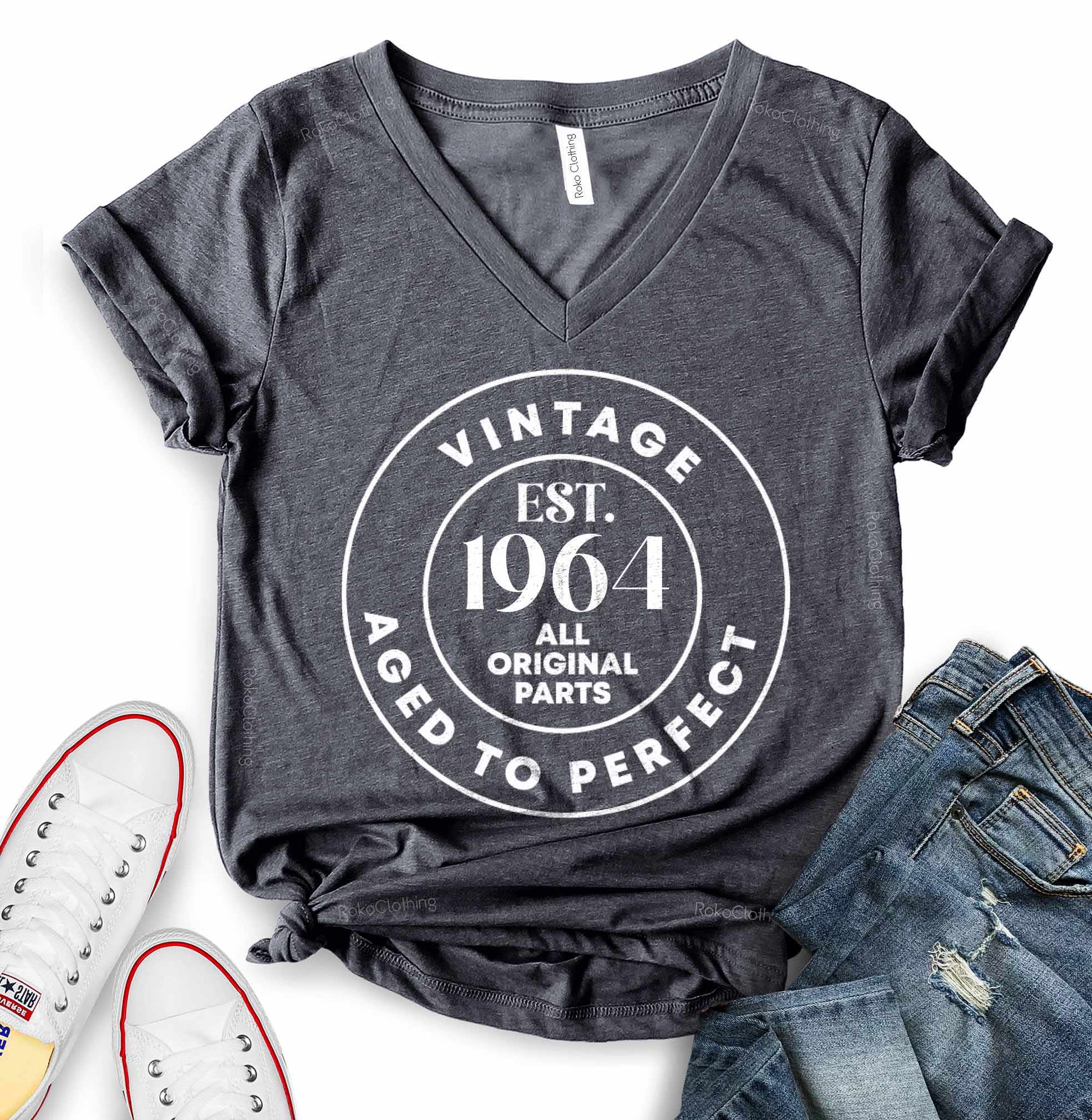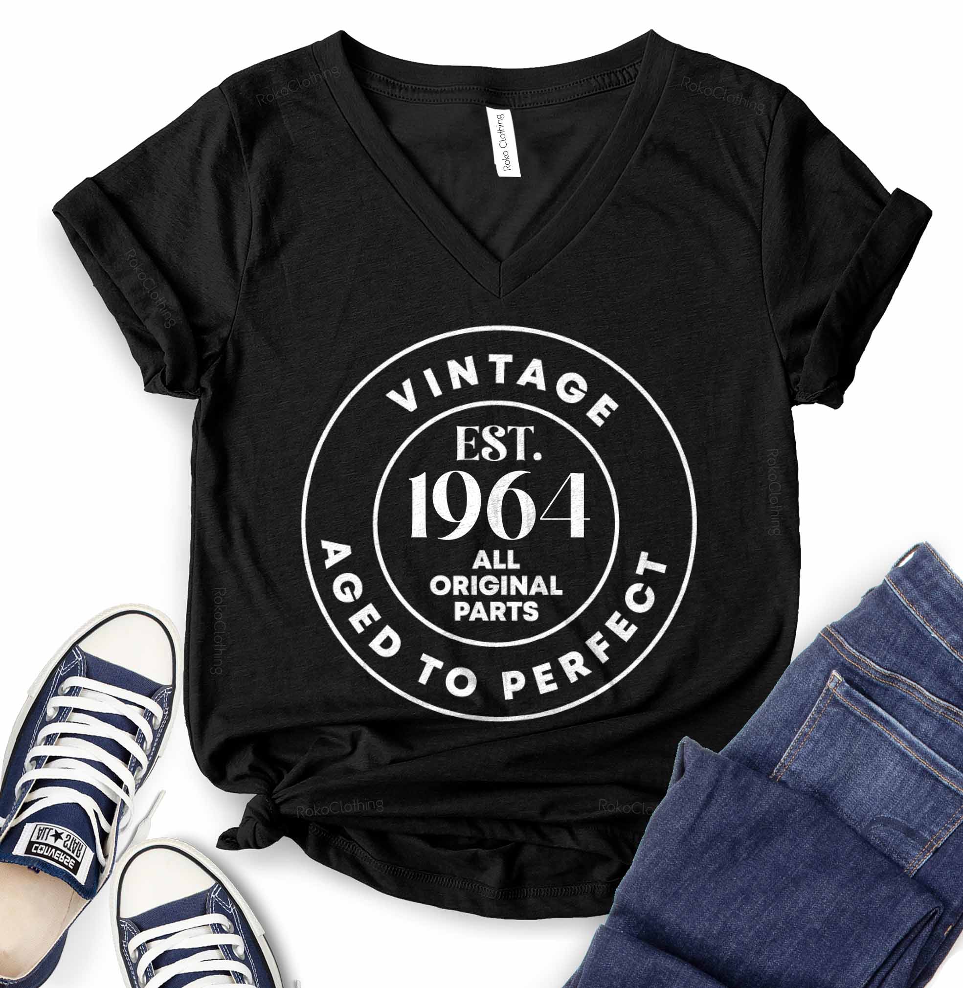 - MADE IN USA: Our Vintage Est 1964 T-Shirt - 60th Birthday Shirts, with WOMEN, UNISEX and WOMEN V NECK model options available, are produced in the USA. We say this with pride. The shirts are designed and printed in the largest country in the World. We screen print our graphic tees with state of the art equipment to ensure vibrant colors and lasting durability. Our size chart is shown in the photo section to the left.